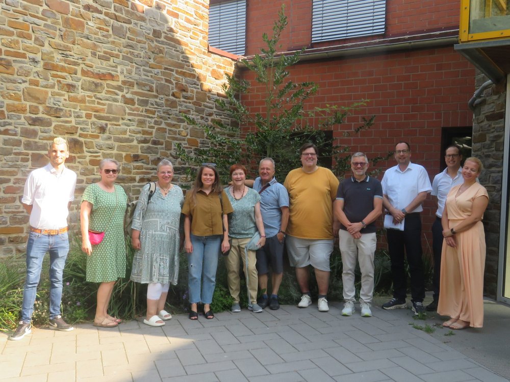 Die Fraktion Bündnis 90/Die Grünen der VG BEN hat zusammen mit der Kreistagsfraktion am Freitag, dem 15. August 2025 die Werkstatt für Menschen mit Behinderungen in der Stiftung Scheuern besucht. Begleitet wurden sie auch von der Wahlkreiskandidatin Annemarie Imgrund und Josef Winkler, MdL. Herr Bernd Felix, pädagogischer Vorstand der Stiftung Scheuern, machte die Einführung. Herr Florinel Abel, als Vetreter der Werkstattbeschäftigten, begleitete den Besuch ebenso. Bei einem Rundgang durch die Werkstätten konnten einige Arbeitsbereiche besichtigt werden. Ein zentrales Element ist die holzverarbeitende Werkstatt, in der die Teilnehmenden nicht nur handwerkliche Fähigkeiten erwerben, sondern auch dann umsetzen können. Hier werden Produkte aus Holz gefertigt, die sowohl für den internen Bedarf als auch für den Verkauf bestimmt sind.