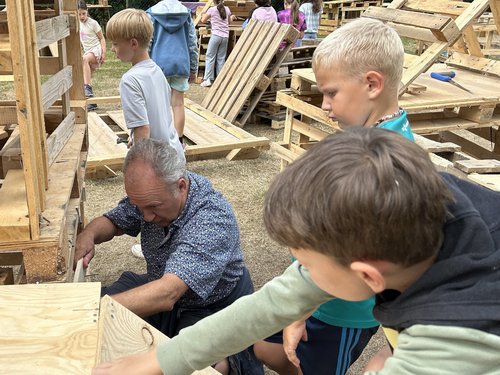 Wichtig sind auch dieses Jahr die Unterstützung und gute und vertrauensvolle Zusammenarbeit mit Stadt, Verbandsgemeinde und Kreis. Eine Hüpfburg wurde z. B. kostenlos zur Verfügung gestellt. Mit Hammer und Säge bauten die Teilnehmer eine Budenstadt, die am Freitagabend prämiert wurde. Beurteilt wurde die Sicherheit der Buden. Beim Beseitigen von überstehenden Nägeln half Vorstandssprecher Bernd Paffrath während des Rundgangs.