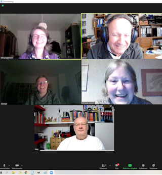 Bei diesem Zoom-Meeting trafen sich die Vorstandssprecher*innen Petra Spielmann und Dr. Bernd Paffrath, Michael Spielmann (Kassierer) und die Beisitzer*innen Elfriede Schmidt und Jörg Nett.